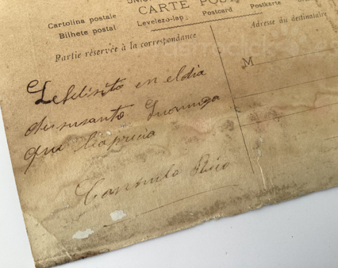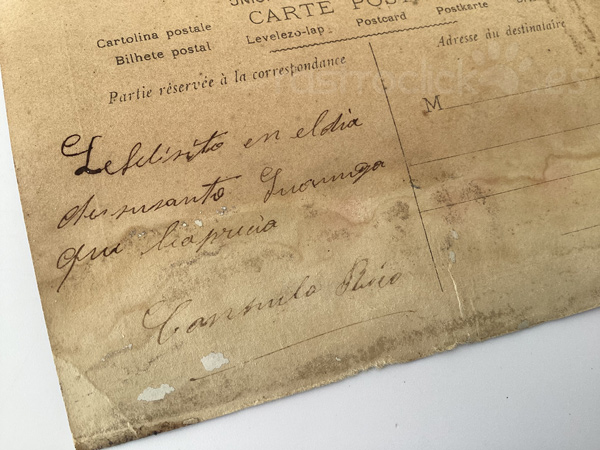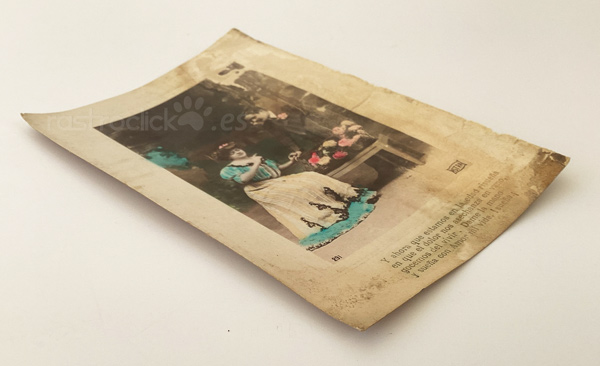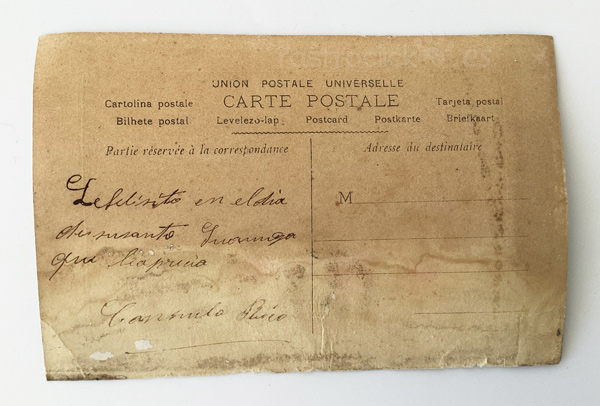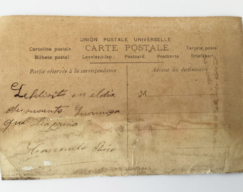 La postal tiene signos del paso del tiempo.