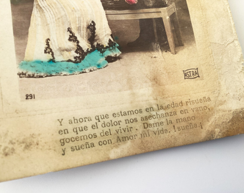 Este tipo de versos era muy típico de las postales sentimentales vendidas en España y América Latina.