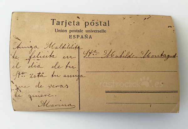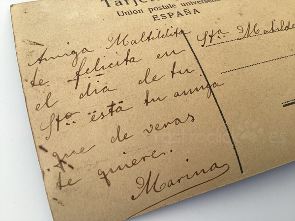 La postal la edita TC de Madrid (Tarjetería Castañéira). La postal está numerada, es la número 283/1. La tarjeta postal la escribió alguien para felicitar el santo a otra persona.