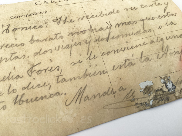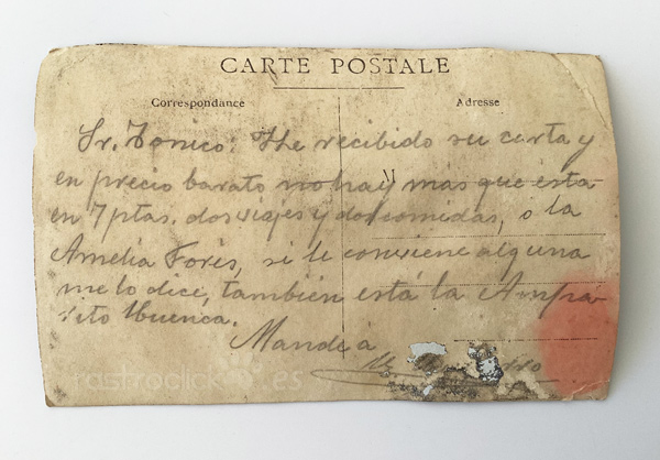 La postal tiene signos del paso del tiempo.