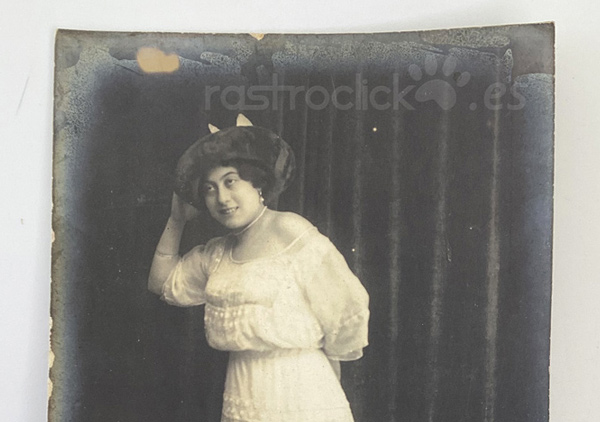 De la mujer de la postal no se tiene información alguna. Podría ser una actriz de la época.
