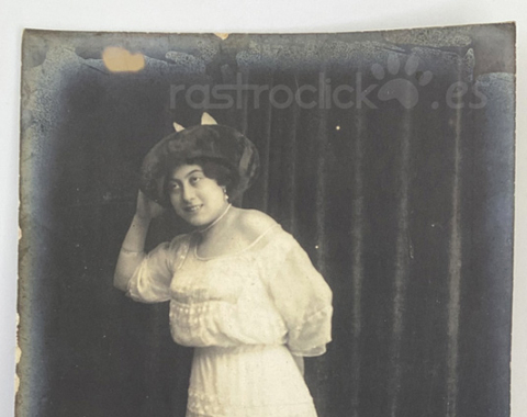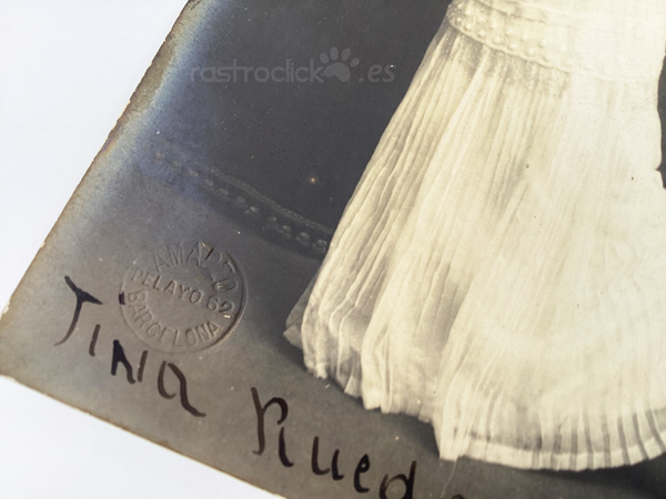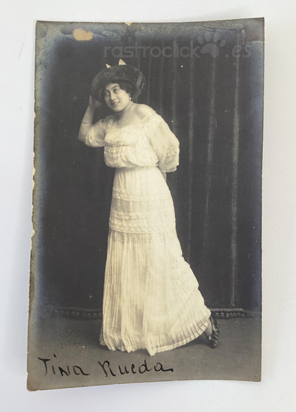 Tarjeta Postal de la artista Tina Rueda. Fotografía de Amadeo y la postal fue editada por la empresa fotográfica con sede en París; R Guilleminot, Boespluig et Cie.