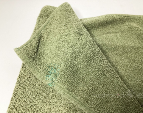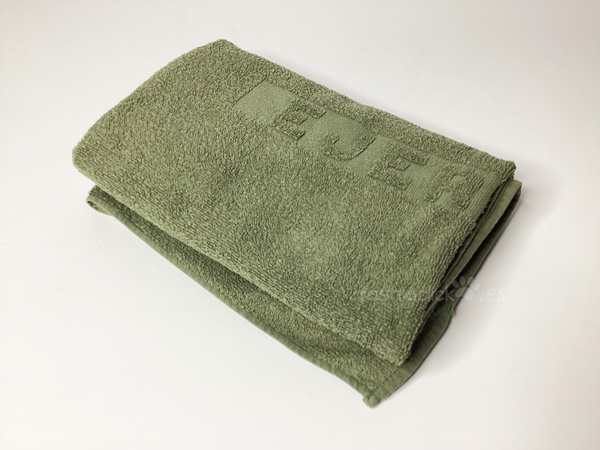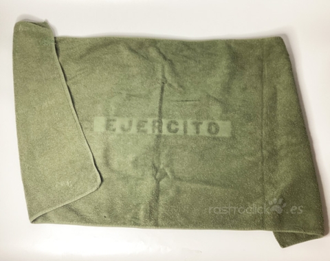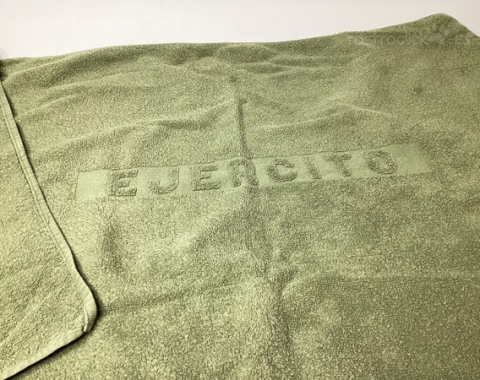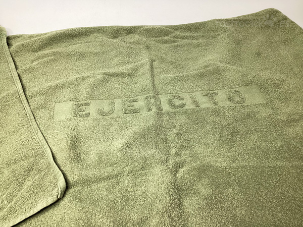 Toalla del Ejército Español. Años 80. Mide 107x51cm. Tiene signos del uso y del paso del tiempo.