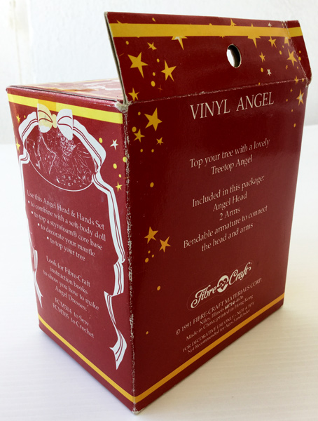 Vinyl Angel Head & Hands Set. Artículo de coleccionista procedente de Illinois (EE.UU). Hermoso Ángel de los árboles. En este paquete se incluye: La cabeza del Ángel y sus 2 brazos. Es material vinilo flexible. Fabricante: Fibre Craft. Modelo: 3138-01. Año 1991. La caja mide: 12cm de alto x 10,5 de ancho x 7,5 de profundidad. Es un artículo nuevo, sin haberse usado, pero la caja muestra signos del paso del tiempo.